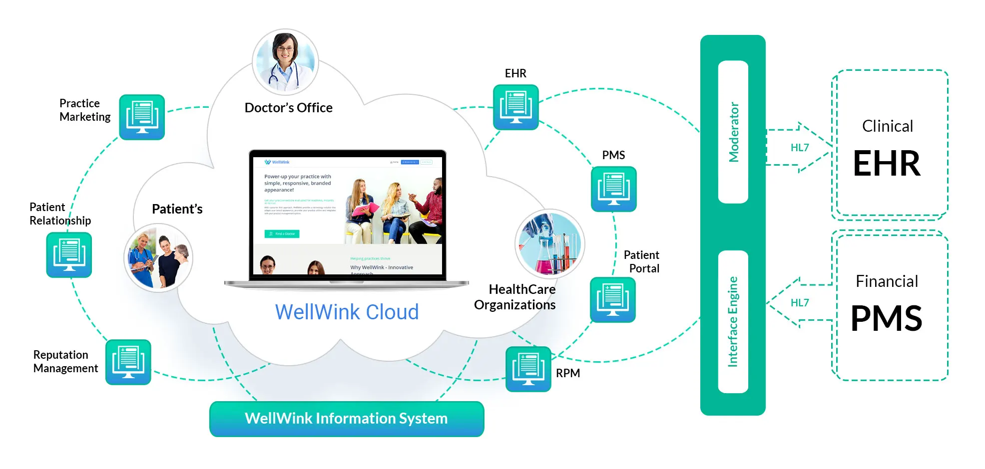 WellWink acts as a bridge between Practice Management Systems (PMS) and Electronic Health Record (EHR) systems, providing a unique advantage to various healthcare stakeholders.